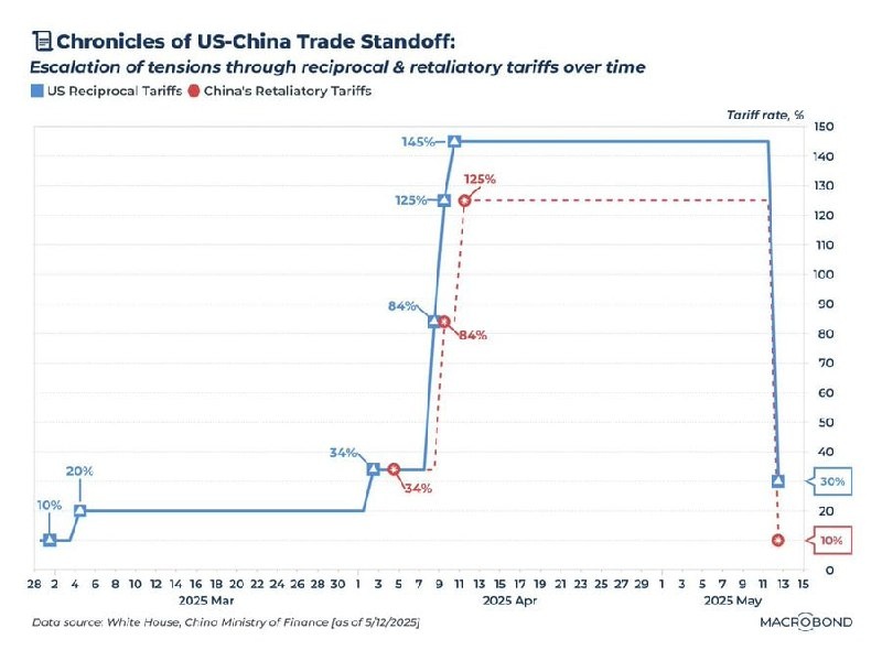 В ответ на пост Последнее ралли на рынках? К слову, коммунисты — единственные, кто принял ответные меры против Liberation Day тарифов и настояли на своем. По итогам потрясающих переговоров Пекин временно сохраняет 10% пошлины, которые они ввели на товары США (аналогичную ставку США сохраняют на китайские товары). Китай также ввел дополнительные пошлины в начале года, чтобы компенсировать дополнительную 20% фентаниловую пошлину. После экстремальных рыночных потрясений, теперь тарифы США временно составляют всего-то 30% (уже не так страшно, как 145%?), а Китая — 10%,. Чистая разница сохраняется на уровне 20%, Карл! Торговая война не закончилась: на руках рекордный торговый дефицит. Вдогонку еще от Goldman [чуть ближе к реальности]: «Значительное снижение ставки тарифа США для Китая должно оказать лишь ограниченное влияние на общую эффективную ставку тарифа США». Ожидаем «лишь небольшое (менее 2 п.п.) снижение текущей эффективной тарифной ставки США в результате смягчения тарифов в