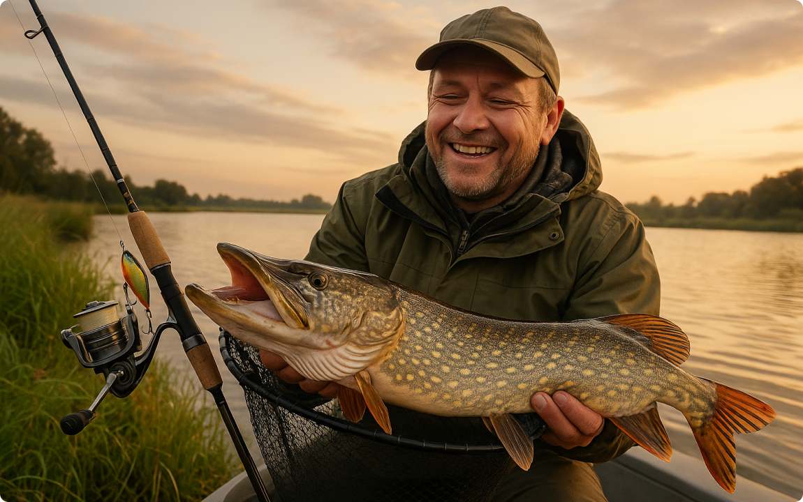 Такую рыбу не забываешь. Не потому что "повезло", а потому что всё — место, снасть, подача, даже погода — сложилось идеально. А главное, я сделал всё не как обычно. Расскажу по-честному, как поймал щуку на 5,2 кг, и что из моего опыта реально сработало. Это было в начале мая, на небольшой реке в Тульской области. Место с виду обычное: поворот реки, трава вдоль берега, глубина — около 1,2 метра. Раньше я тут ловил окуня, но в тот день заметил: 📌 Вывод: щука явно гоняла малька. Значит, она рядом и активна. Спиннинг: длина 2.4 м, тест до 28 г — средний строй.