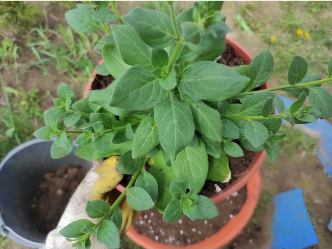 Всем здравствуйте! Сегодня делюсь своим опытом перевалки петунии в большой объём на постоянное место. В этом году я посеяла всего-лишь один сорт тайфун Сильвер. Я люблю тайдалы, особенно Торнадо Сильвер, но в этом году купила тайфун. (Торнадо не было в моем любимом магазине). Посев производился в начале февраля, немного позже, чем обычно. Но тайдалы развиваются хорошо и они к моменту пересадки отлично успевают нарастать. Итак, в этом году у меня всего-лишь пять саженцев. До момента перевалки в большой обьем они росли в 4 х литровых кашпо. Весна в этом году непонятная. В марте доходила температура до +20, а в апреле -мае заморозки, то жара, то холод. Тайдалы высаживаю в обьем не менее 18 литров. В этом году у меня три кашпо на 24 литра и два кашпо на 35 литров, можно высаживать и в 60 литров. Такая петуния в больших объемах шикарна. Грунт - нейтральный (не кислый) торф с агроперлитом. Так как обьемы немалые, буду смешивать 1:1 прошлогодний торф со свежим. В прошлом году мои пет
