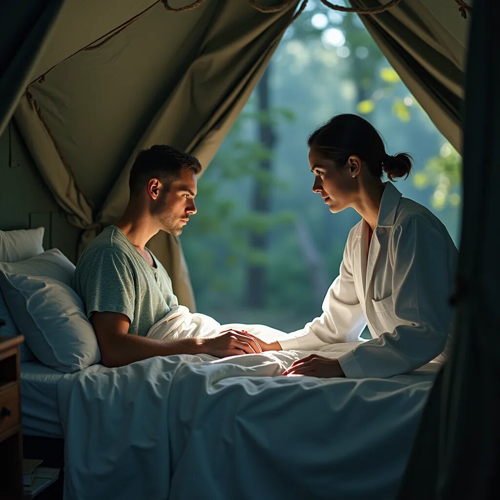 После того, как Жигунов помог Олегу Ивановичу сначала помыться, побриться и вообще превратиться из питекантропа в цивилизованную личность (будучи по званию старшим офицером и начальником, Романцов не смог бы довериться в этом слишком личном плане кому-то другому), Гардемарин отвёл нового «подопечного» в отдельную палатку, чтобы соблюсти некоторую приватность. Никому не стоило видеть, кого там лечат и особенно никто не должен был узнать от чего.