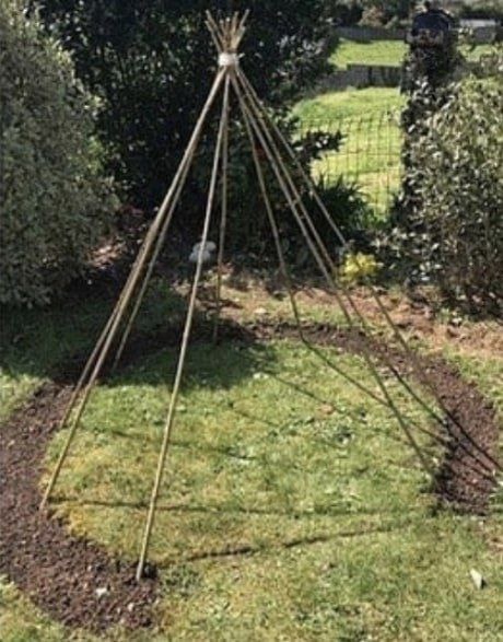 Идея как сделать красивый элемент ландшафтного декора из вьющихся с пользой и для детей: в таком шалаше им точно будет интересно
