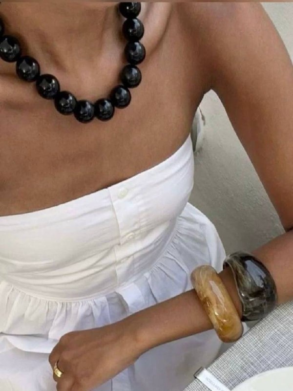 Вместе с эстетикой бохо в моду вернулись бусы в винтажном стиле. Самые актуальные — из натуральных материалов, например, дерева. И помните: трендовое украшение должно быть коротким. Grazia