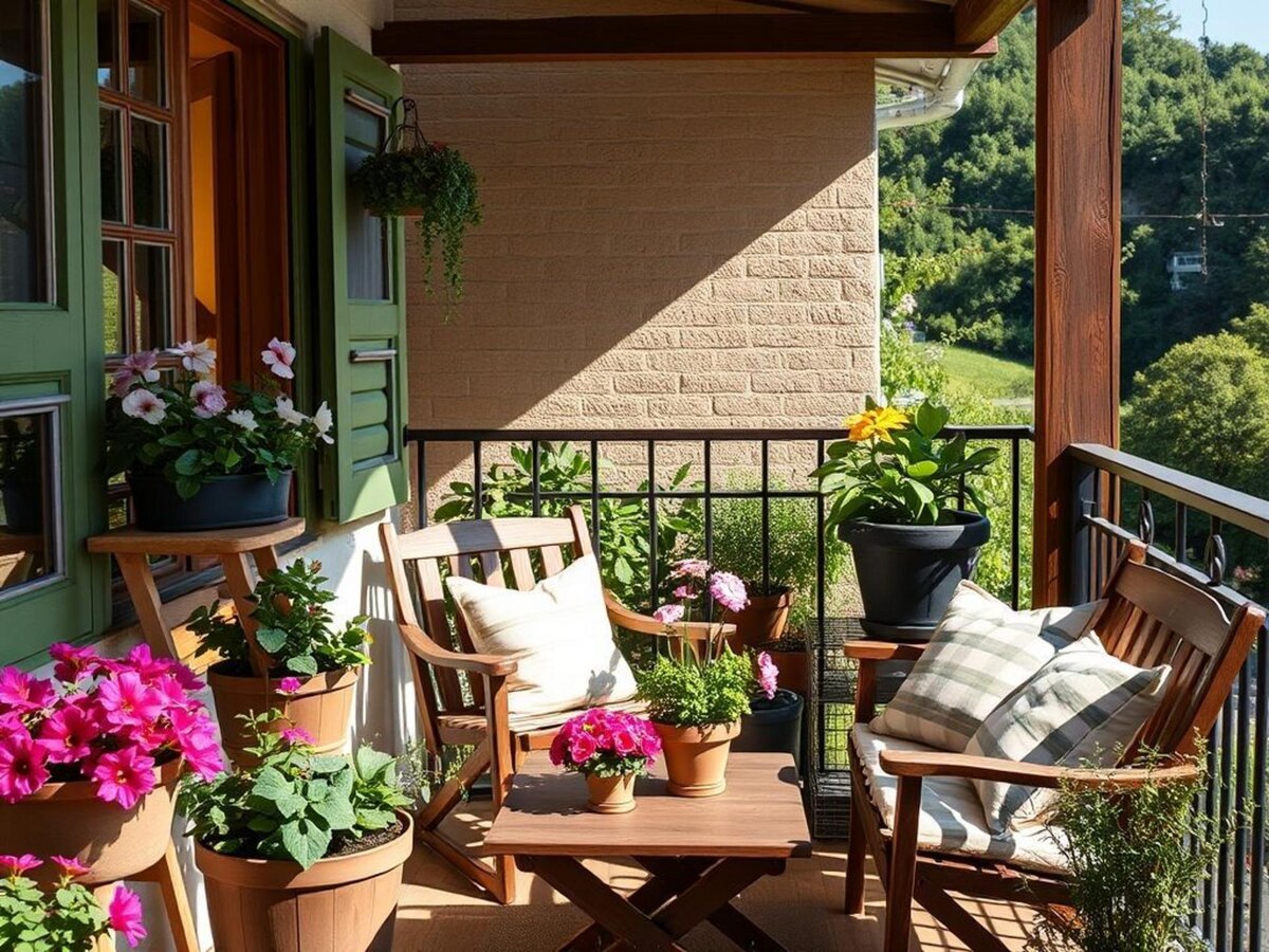 Балкон или лоджия — это дополнительное пространство, которое можно превратить в уютный уголок для отдыха или рабочую зону. Главное — правильно подобрать мебель, которая будет не только красивой, но и функциональной. Давайте рассмотрим несколько интересных вариантов. Если пространство ограничено, важно выбирать мебель, которая не загромождает площадь, но при этом остается удобной. Отличное решение для тех, кто хочет использовать балкон и для чаепитий, и для отдыха. После использования такую мебель можно сложить и освободить место. 1. Складной столик из дерева — легкий и стильный.