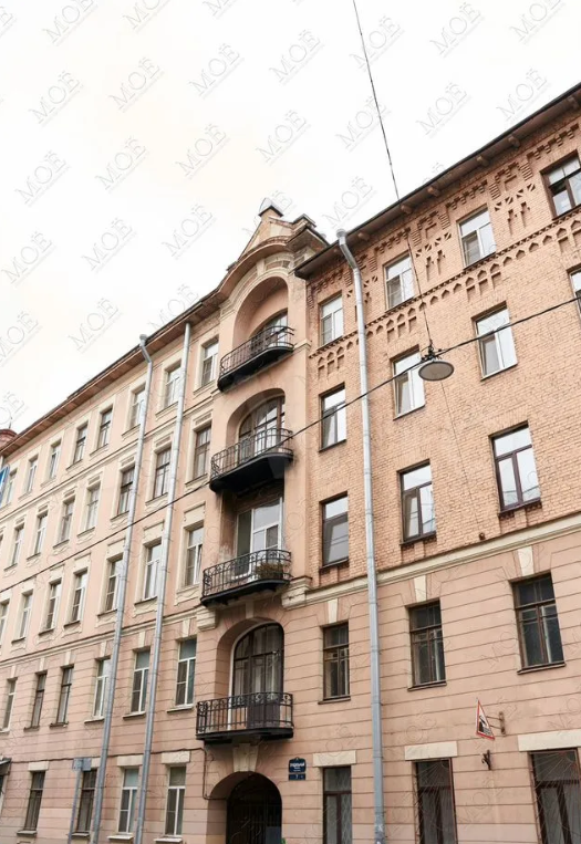 Неплохую комнату продают на набережной Фонтанки, дом 165. Собственный доходный дом архитектора Китнера был построен в 1903–1904 годах в стиле модерн. Иероним Севастьянович построил приличное количество в основном административных зданий по Петербургу, самое известное обывателю — Боткинская инфекционная больница. В собственном доходном доме прожил до революции, после которой эмигрировал в Германию. Любопытно, что дети его продолжили жить в доме отца в советское время, сын Максимилиан умер здесь во время Блокады Ленинграда и был похоронен на Смоленском Лютеранском кладбище. Здание неплохо сохранилось до наших дней, в некоторых парадных сохранились витражи и световые фонари на последних этажах. Нужная нам комната расположена в шестикомнатной коммунальной квартире на пятом этаже. Сама квартира, так сказать, подуставшая, но довольно чистая. Два входа, столько же туалетов, кладовка и ванная. Много исторической «столярки» — явно родные двери и паркет. Забавно, но, судя по плану, ванной изнача
