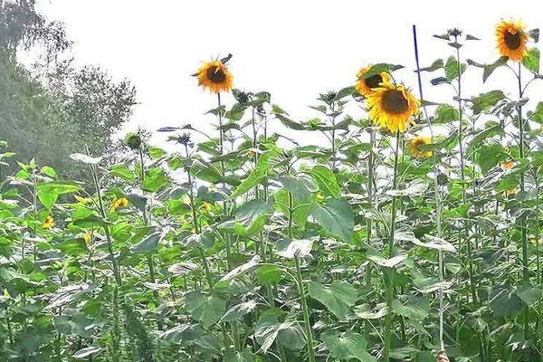 Подсолнухи могут достигать впечатляющих размеров, порой превышая 350-400 см в высоту. Чтобы избежать их падения, важно обеспечить поддержку стеблям, используя для этого деревянные колышки.