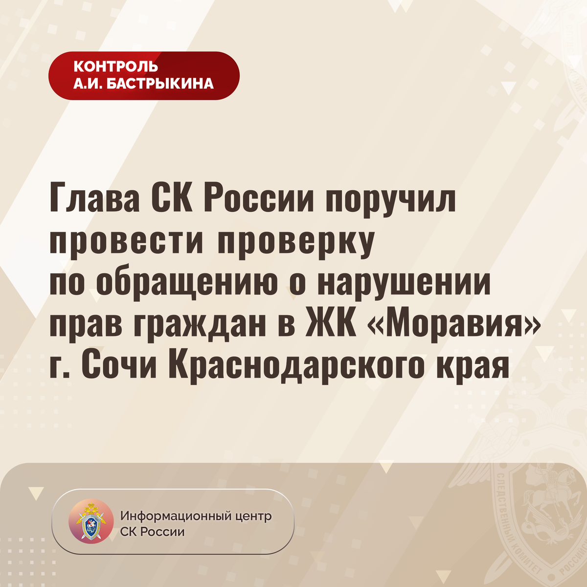 Глава СК России поручил провести проверку по обращению о нарушении прав граждан в ЖК «Моравия» г. Сочи Краснодарского края