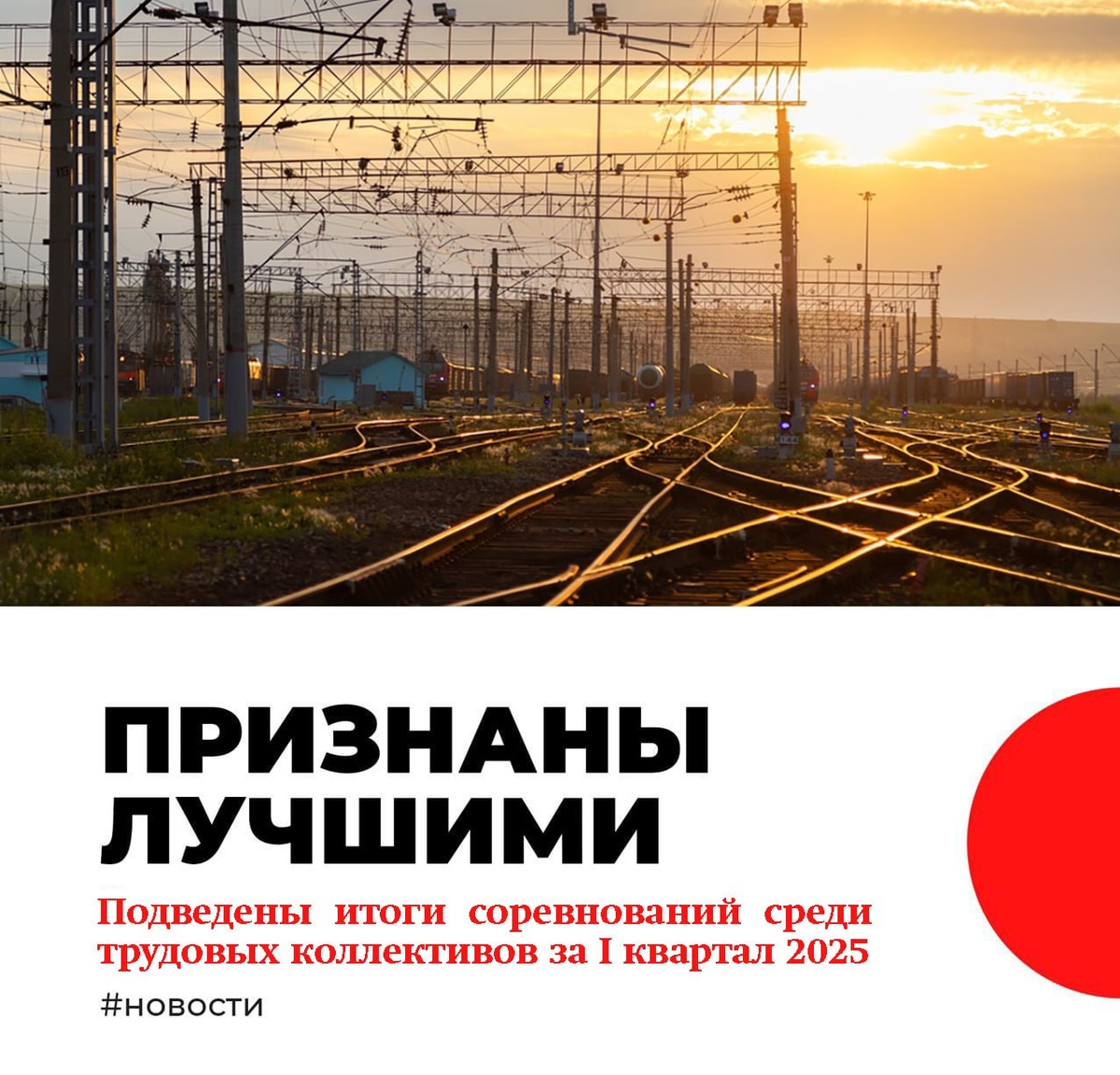9️⃣ коллективов Красноярской железной дороги признаны победителями отраслевого соревнования ОАО «РЖД» по итогам работы за первый квартал 2025 года. 🥇 Первое место присвоено трудовому коллективу станции Красноярск-Северный. 🥈 Второе место заняли станция Злобино, эксплуатационное локомотивное депо Абакан II, путевая машинная станция №256, Красноярская дистанция электроснабжения. 🥉 Третье место у Красноярского информационно-вычислительного центра, Красноярской региональной дирекции железнодорожных вокзалов, эксплуатационного вагонного депо Абакан, Кошурниковской дистанции сигнализации, централизации и блокировки. Поздравляем! 📱 Читайте нас онлайн, чтобы быть в курсе всех событий: ⏩ Наше сообщество ВКонтакте ⏩ Наш Telegram-канал ⏩ Наш сайт