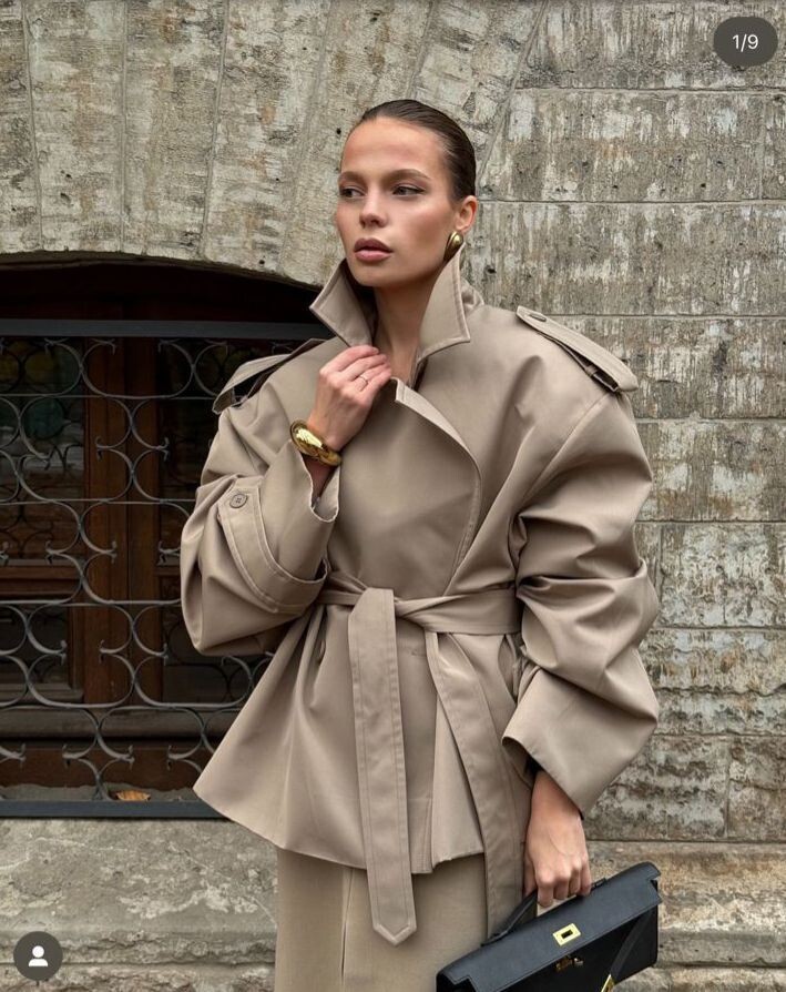 Летняя альтернатива классическому тренчу — укороченная и легкая версия с объемным кроем. Идеально сочетается с юбками, брюками и платьями, добавляя образу свежести и структурности. Выглядит очень свежо!