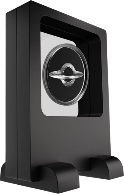 Эта уникальная коллекционная монета выделяется своим инновационным дизайном и достаточно экстремальной тонкостью. Знакомьтесь, это 200 франков КФА (BEAC), Республика Чад, монета 2023 года из одного грамма серебра 999-й пробы, толщина которой всего лишь 0,15 миллиметра! Для сравнения, наш российский рубль имеет толщину приблизительно 1,5 -2 мм. Вполне понятно, что эта монета явно не создавалась на каком-либо африканском дворе. Такие современные технологии, цифровая печать и лазерная гравировка на сверхтонком серебряном листе возможны только в передовых странах. Та и здесь, скорее всего это немецкий частный монетный двор MDM, который сотрудничает в этой сфере с Чадом. Центральный элемент на реверсе этой монеты "чёрная дыра", изображение, созданное с помощью оптической иллюзии. Узоры и градиенты визуально "заставляют" смотреть в центр, как бы имитирую гравитационный эффект чёрной дыры. Ну а на аверсе изображён государственный герб Республики Чад, коза и лев, держащие щит, а также свиток