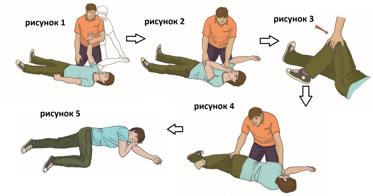 Расположить ближнюю к себе руку пострадавшего под прямым углом к его телу (рисунок 1). Не рекомендуется отведение этой руки вверх за голову.