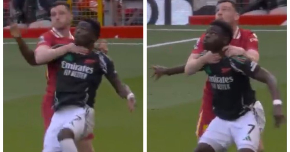 Энди Робертсон чуть не задушил Букайо Сака в матче «Арсенал»—«Ливерпуль»: арбитр не вмешался