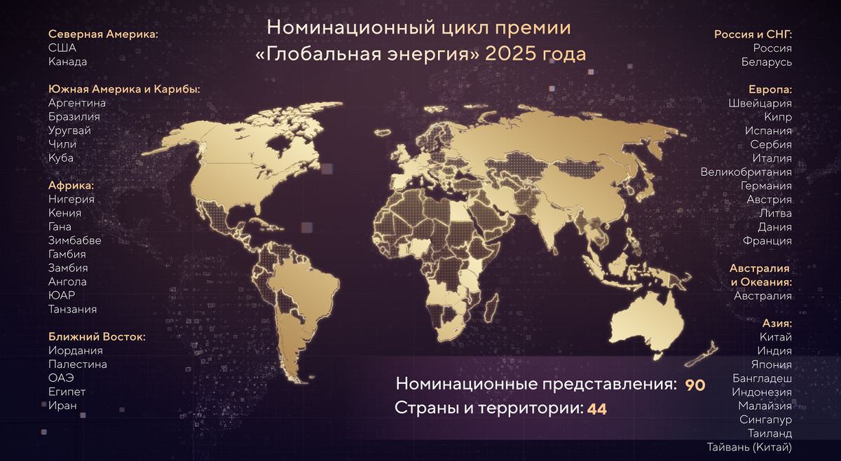 Завершен прием заявок на премию «Глобальная энергия». Всего в 2025-м на нее номинировались представители 44 стран, это почти вдвое больше, чем в прошлом году. США, Китай и Индия лидируют по числу проектов от иностранных государств.