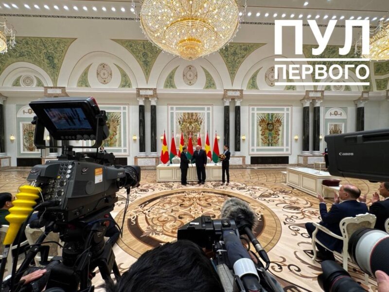 Президент Беларуси Александр Лукашенко 12 мая наградил генерального секретаря Центрального комитета Коммунистической партии Вьетнама То Лама орденом Дружбы народов, сообщает корреспондент агентства «Минск-Новости» со ссылкой на Telegram-канал «Пул Первого». — Эта награда за огромный вклад, который внес генеральный секретарь в укрепление нашего сотрудничества. Благодаря ему мы спасли отношения Беларуси и Вьетнама. И выводим на самый высокий уровень, — подчеркнул белорусский лидер. Награды То Лам удостоен за значительный вклад в развитие и укрепление дружественных отношений, стратегического партнерства между двумя странами. Фото из Telegram-канала «Пул Первого»