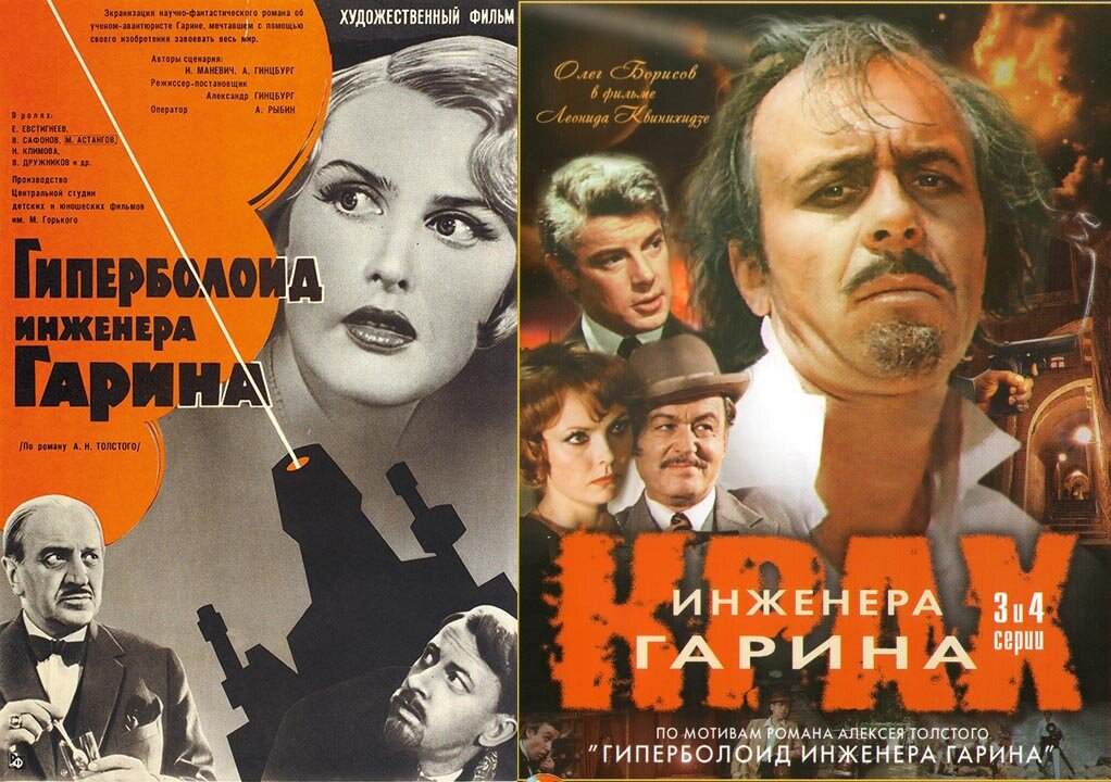 Так появилась первая экранизация – "Гиперболоид инженера Гарина" (1965) А. Гинцбурга, а затем и вторая – "Крах инженера Гарина" (1973) Л. Квинихидзе.