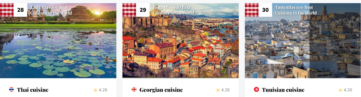 Как оказалось, меня то уже давно опередили и существует престижный мировой рейтинг Taste Atlas, ранжирующий в том числе и страны, а скорее национальные кухни по "вкусноте". Что интересно, моё мнение не очень-то и совпадает с выбором авторитетного ресурса. По итогам 2024-го года Таиланд занял всего лишь 28-е место.