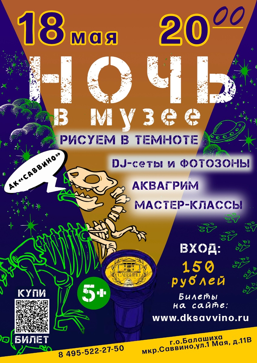 💥Внимание! Держитесь крепче, потому что 18 мая в 20:00 ДК "Саввино" превратится в эпицентр взрыва креатива под названием "Ночь в музее"! 🎨Только представьте: вы, ночь, и… рисование в темноте! Ваши кисти станут волшебными палочками, создавая светящиеся шедевры прямо из ничего! А потом… БУМ! Бумажная дискотека! Тонны бумаги обрушатся на вас, превращая танцпол в белоснежное безумие! Готовьтесь к бумажному торнадо веселья! И это еще не все! Аквагрим? Да! Превратим вас в лесного эльфа, супергероя или даже в самого Да Винчи (почти)! Мастер-классы? О, тут уж разгуляемся! 📸Ну, и конечно же, фотозоны! Такие яркие и необычные. НО! ОСТАЛОСЬ ВСЕГО 20 БИЛЕТОВ! Да-да, вы не ослышались! Готовы к самому яркому событию этой весны? Тогда ждем вас! Будет незабываемо! ❗БИЛЕТЫ НА САЙТЕ: https://clck.ru/3LjxLP #творчествобалашиха, #Подмосковье, #культураподмосковья, #культурабалашихи, #железнодорожный, #дксаввино, #вПодмосковье,#НашеПодмосковье #вБалашихе, #Балашиха