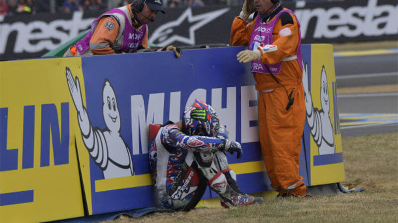 Звезда «Yamaha» Фабио Квартараро очаровал болельщиков на грандиозном этапе MotoGP в Ле-Мане, заняв первое место на старте и показав отличную спринтерскую гонку. В воскресном Гран-при он поначалу лидировал, а затем внезапно сошел. Даже опытным репортерам и членам команд было сложно следить за событиями на этом Гран-при Франции. Как и было объявлено, незадолго до старта гонки MotoGP над регионом Земли Луары надвинулся фронт непогоды. Все гонщики на стартовой решетке были обуты в слики, и в конце прогревочного круга все заехали в боксы, чтобы пересесть на мотоциклы с дождевыми шинами, поскольку асфальт был слишком мокрым. Раньше это означало бы, что всем 22 гонщикам пришлось бы стартовать с пит-лейн. Директор гонки Марк Уэбб отреагировал и остановил гонку по соображениям безопасности в соответствии с новыми правилами. Был включен протокол быстрого рестарта. Слишком поздно 13 гонщиков решили снова сменить мотоциклы и пересели с мотоцикла с дождевыми шинами на мотоцикл со сликами. Поэтому и