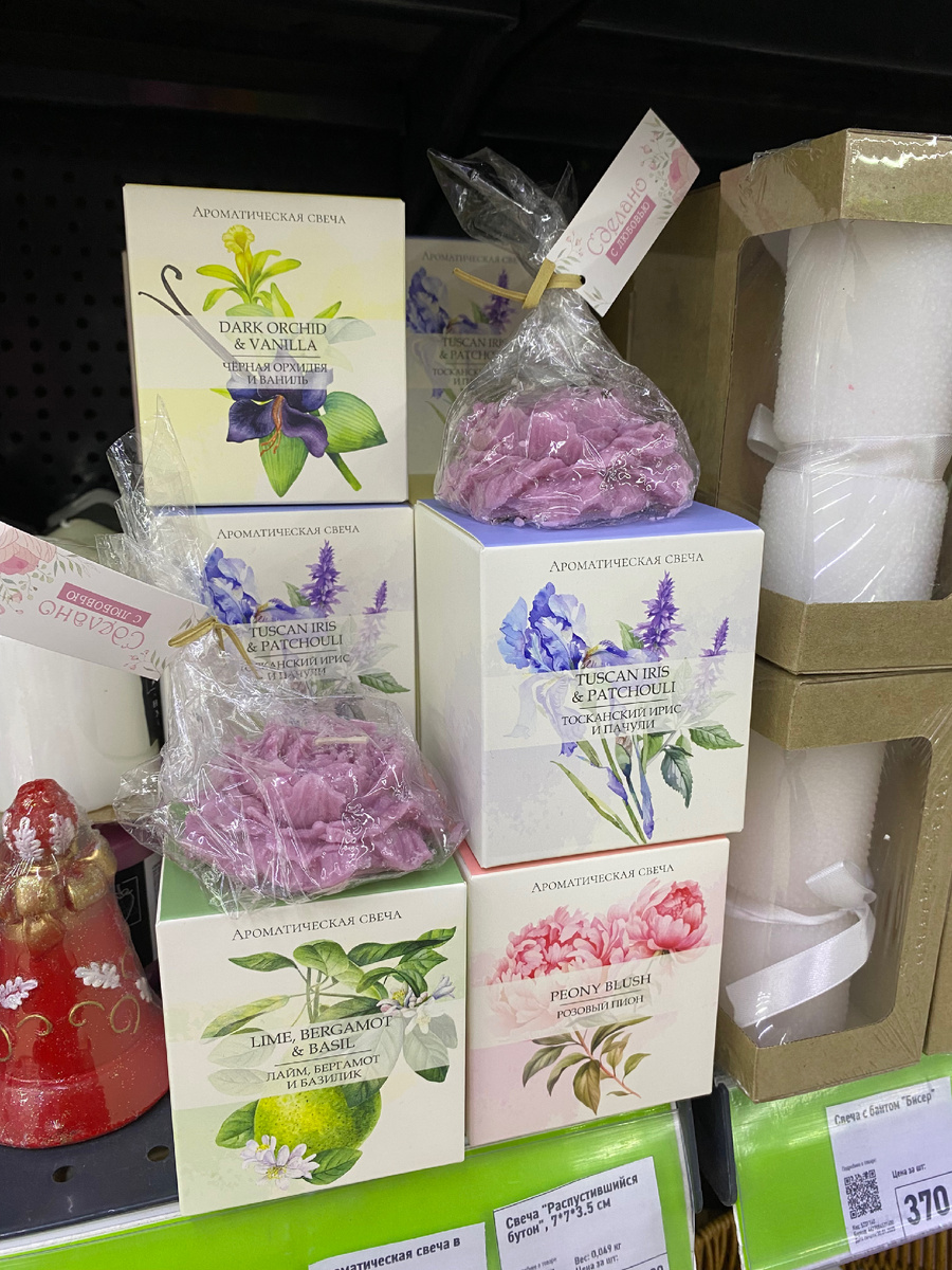 2. Рядышком можно найти свечку поменьше. Выглядит как распустившийся бутон, хотя носит красивое название "Пионовидная роза". Дополнит ваш интерьер, и одарит его теплом. Цены, к сожалению, не было.