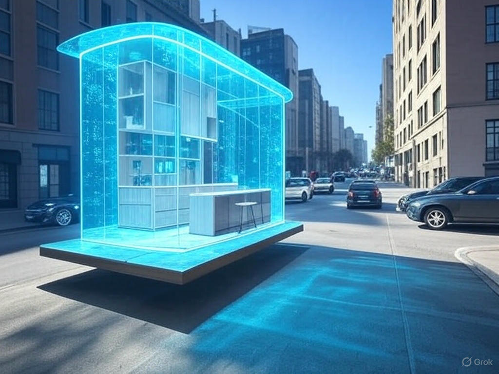 Давайте представим, что вы — владелец студии дизайна интерьера, и у вас есть суперсекретная технология из будущего. Вы решаете рекламировать свои услуги с помощью голограмм, потому что, ну, кто не захочет увидеть свою будущую квартиру прямо на тротуаре? Вот как это могло бы выглядеть: