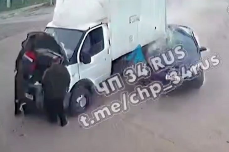 Опубликовано видео жуткого наезда на «ГАЗель» и людей под Волгоградом