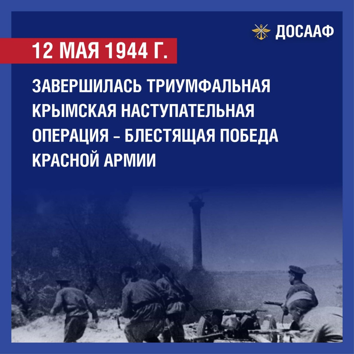 12 мая 1944 года завершилась триумфальная Крымская наступательная операция – блестящая победа Красной Армии. Всего за 35 дней советские войска 4-го Украинского фронта и Отдельной Приморской армии при поддержке 8-й воздушной армии, Черноморского флота, Азовской военной флотилии и партизанских соединений разгромили 195-тысячную немецко-румынскую группировку, освободив весь Крым. Особенно ожесточенными были бои за Сапун-гору и штурм Севастополя, где враг создал мощную систему укреплений. Операция началась 8 апреля прорывом немецкой обороны на Перекопе и Сиваше, а уже 11 апреля был освобожден Джанкой – ключевой узел вражеской обороны. 9 мая советские войска штурмом взяли Севастополь. Остатки крымской группировки противника были ликвидированы к полудню 12 мая на мысе Херсонес. Эта победа имела огромное военно-стратегическое значение: был ликвидирован важный плацдарм противника и восстановлен контроль над Черным морем. ДОСААФ России гордится подвигом героев Крымской операции и призывает