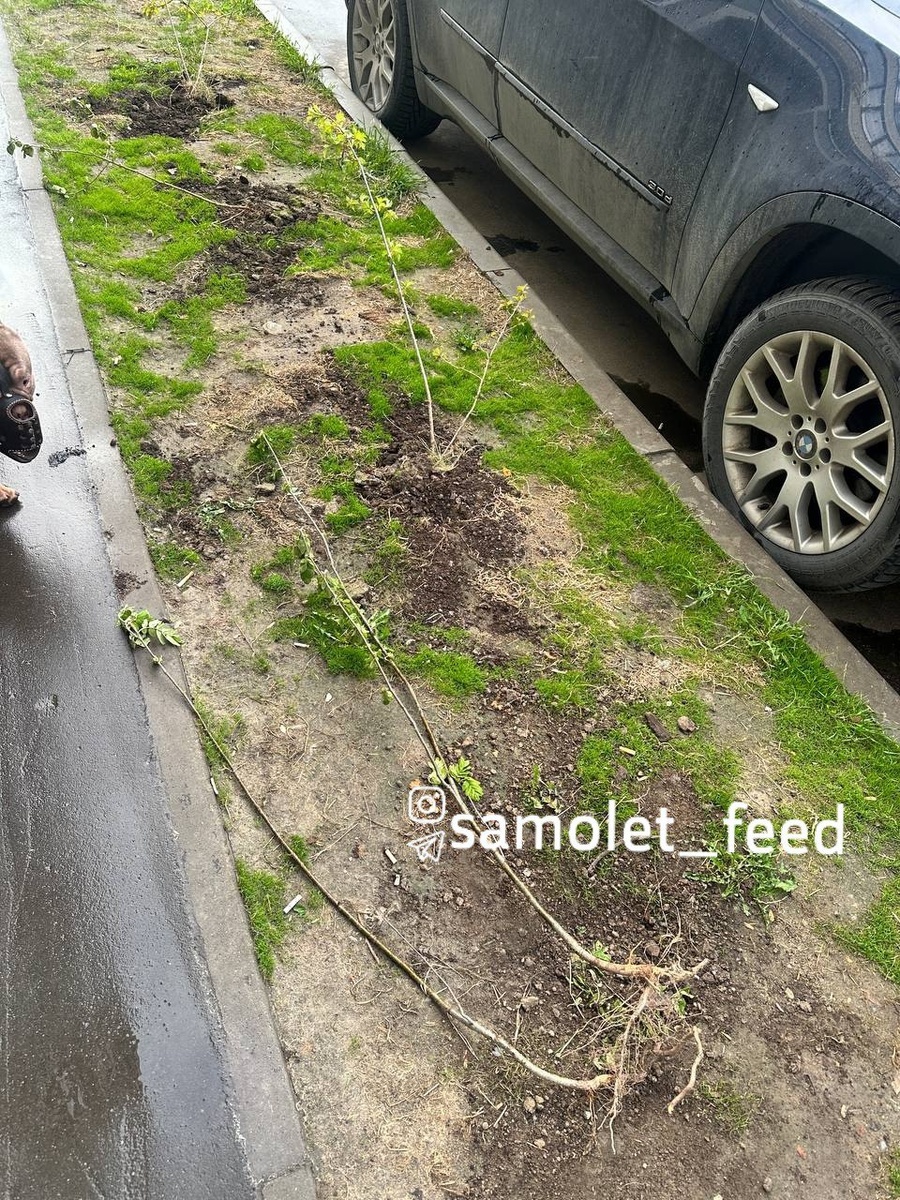 Неизвестные на улице Камова вырвали с корнями саженцы деревьев.