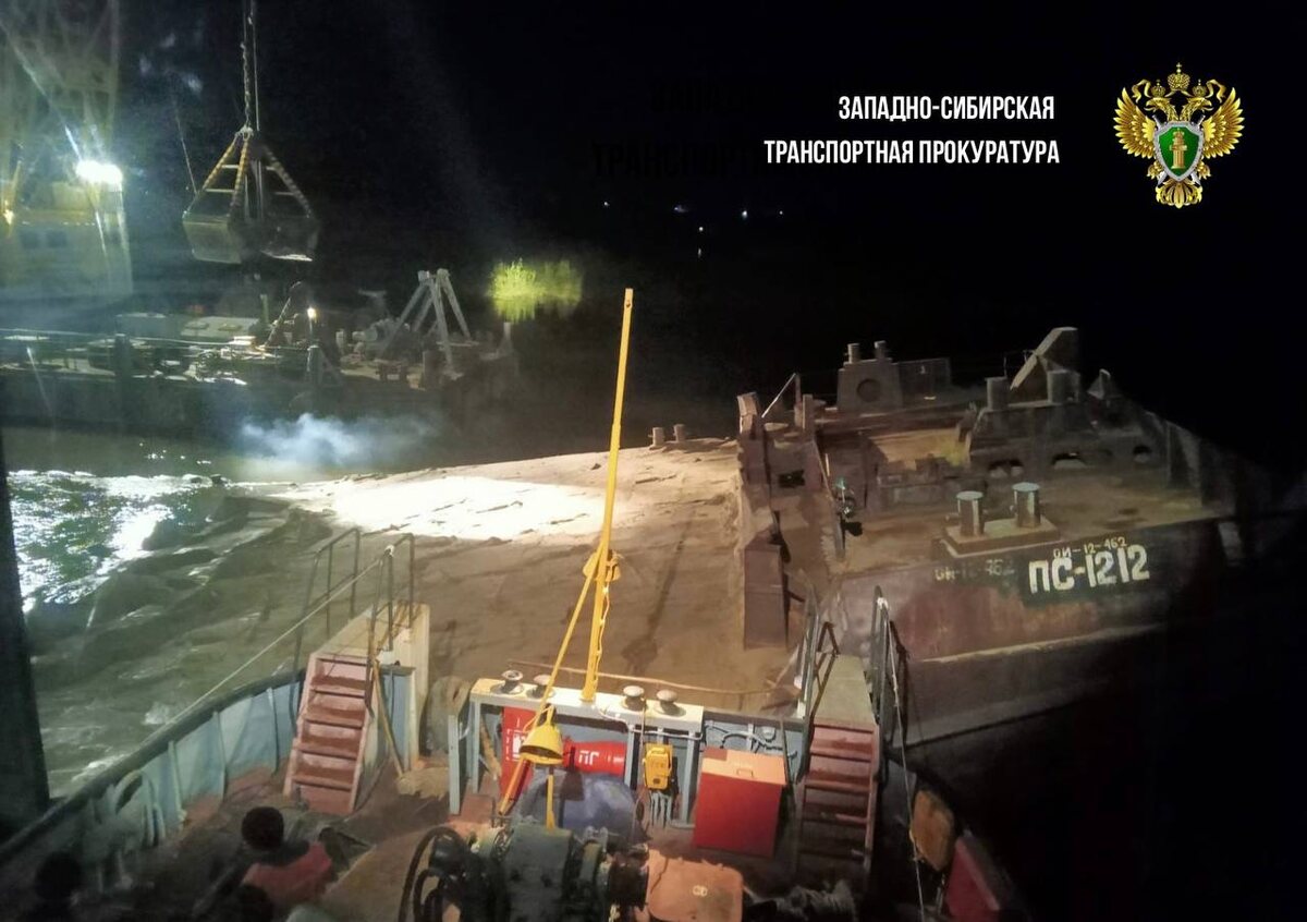 На реке Иртыш в Омской области баржа с песком частично ушла под воду