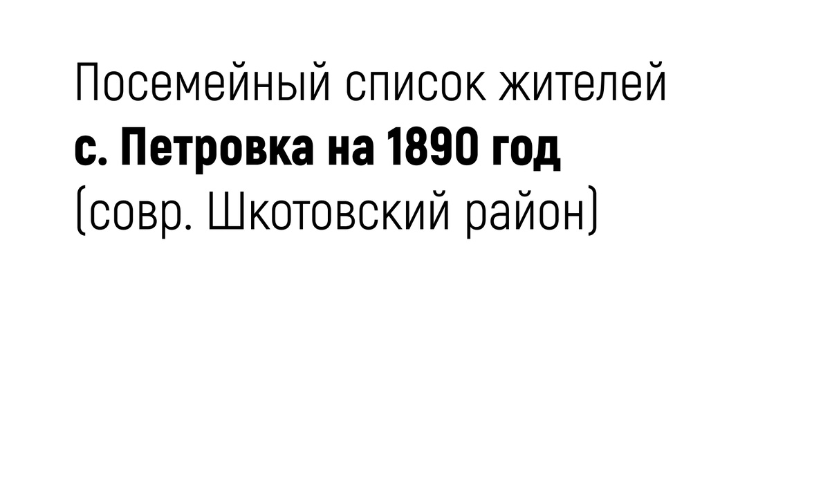 Ниже привожу посемейный список жителей села Петровка на 1890 год (современный Шкотовский район) с указанием ФИО главы семьи и его возраста.