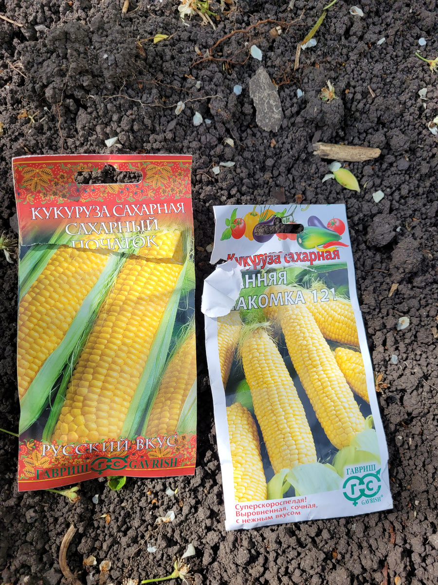 Сажаю кукурузу сухими семянами в грунт. Уже сажала примерно неделю назад, сегодня посадила еще. Не знаю взойдет ли, не очень теплая погода. Для посадки выбрала в этом году обычную желтую кукурузу. Дело в том, что в прошлом году помимо обычных семян решила взять цветную экзотику. Сегодня вспомнила об этом и решила написать. Среди экзотов были и пятнистые и темные сорта. В том числе и такая, почти черная кукуруза: Было удивительно смотреть на такое цветное разнообразие...но когда дело дошло до вкуса, оказалась, что и темная кукуруза и пятнистая существенно уступает обычной желтой. Она более жесткая... будто дерево грызешь (хотя откуда такое сравнение, я его вроде никогда не грызла). Так что если кто-то хочет купить семена экзотической кукурузы не ради декоративности, то лучше не покупать. Хотя может у кого-то есть другой опыт посадки цветной кукурузы? А вы уже посадили кукурузу? Не забудьте подписаться на канал и поставить лайк.