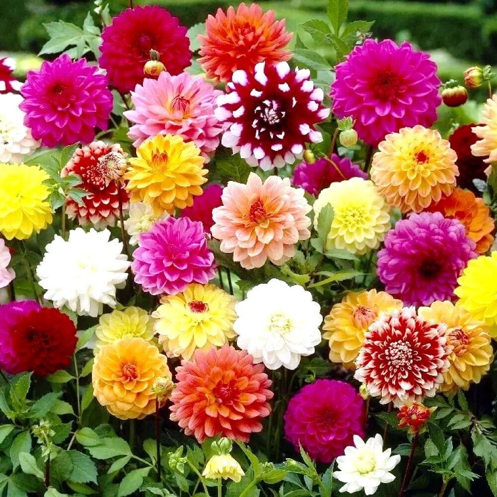 - «Семь красавиц». Жизнерадостные низкорослые георгины, компактные растения высотой около 45 см. Соцветия разнообразных окрасок, диаметром 8–9 см.