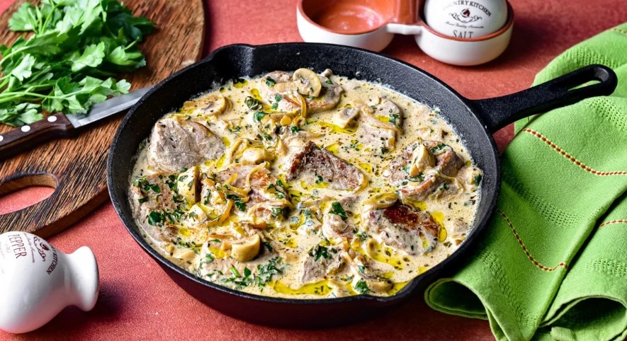 Свинина, тушенная с грибами в сметанном соусе: нежное мясо в сливочной грибной подливе
