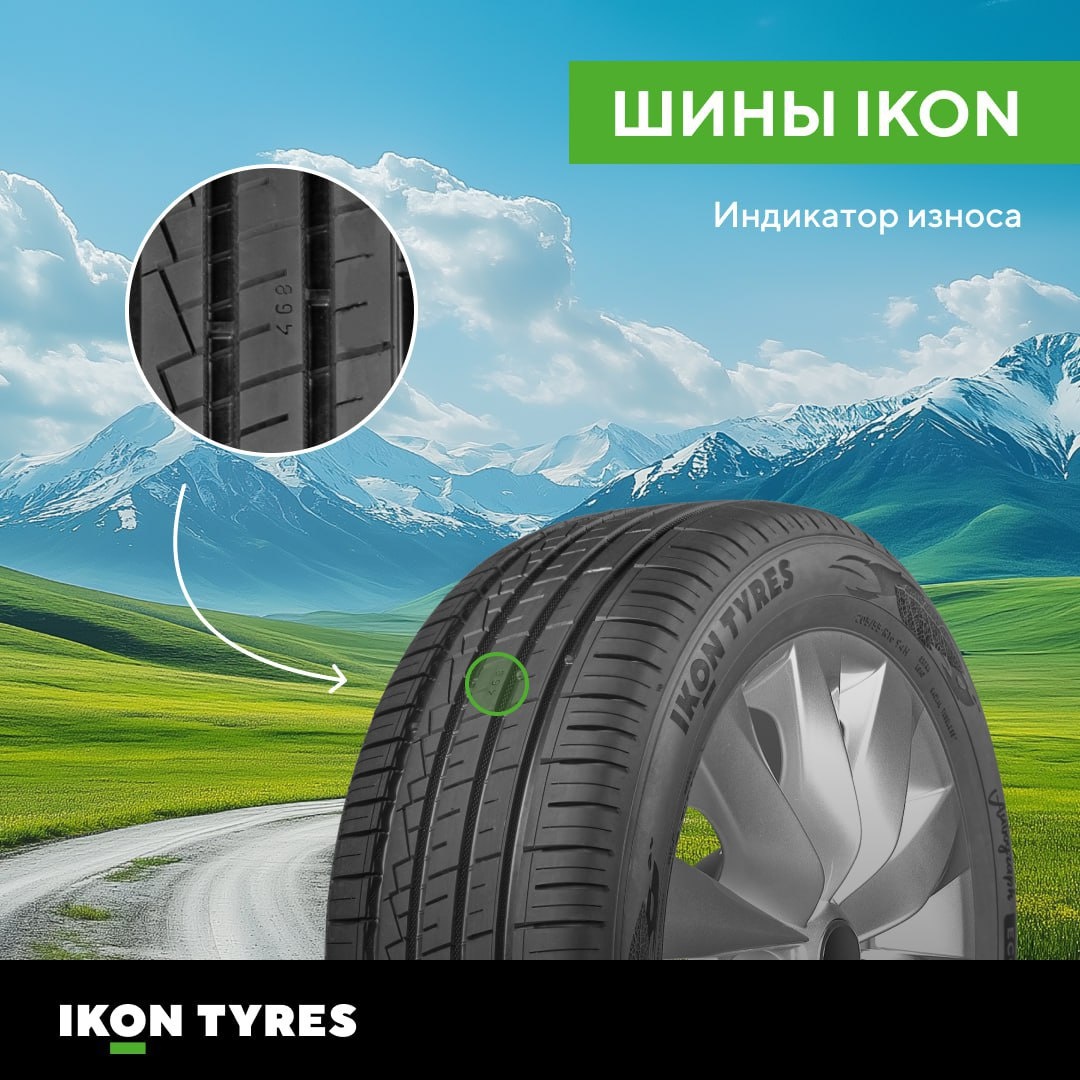 Премиальные шины Ikon Autograph заметно снижают эффект аквапланирования, обеспечивают отличное сцепление с дорогой на высоких скоростях и гарантируют мягкий ход, экономя топливо. Все шины Ikon оснащены индикатором износа. Индикатор показывает остаточную глубину рисунка протектора в миллиметрах. Наибольшая из видимых цифр на индикаторе — это и есть текущая глубина рисунка. Не нужно измерять. Не нужно гадать. Цифры говорят сами за себя. Это не просто комфорт. Это ваша безопасность на дороге.