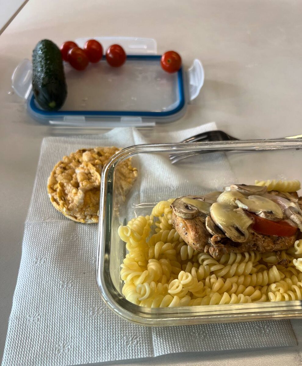 ВРЕМЯ ОБЕДА 🥙 На обед все также просто, как и на завтрак. 🍞 Макароны из твердых сортов пшеницы (углеводы), куриная грудка в духовке (белок) и сыр (жиры). 🍖 Хлебец кукурузный вместо хлеба. Мне проще есть хлеб без колбасы, чем колбасу без хлеба, образно. 🥗 Овощи никогда не учитывал в рационе, не тот уровень подведения, не билдер все-таки. Ем обычно помидоры и огурцы 🥒 ⁉️ Вы всё еще думаете что правильно питаться сложно? Уж поверьте, сильно легче, чем давиться бургерами и пиццей ежедневно 🍕 ⚡️ ВАЖНО! На днях еще сделаю и выложу результаты inbody, будем вместе отслеживать прогресс.