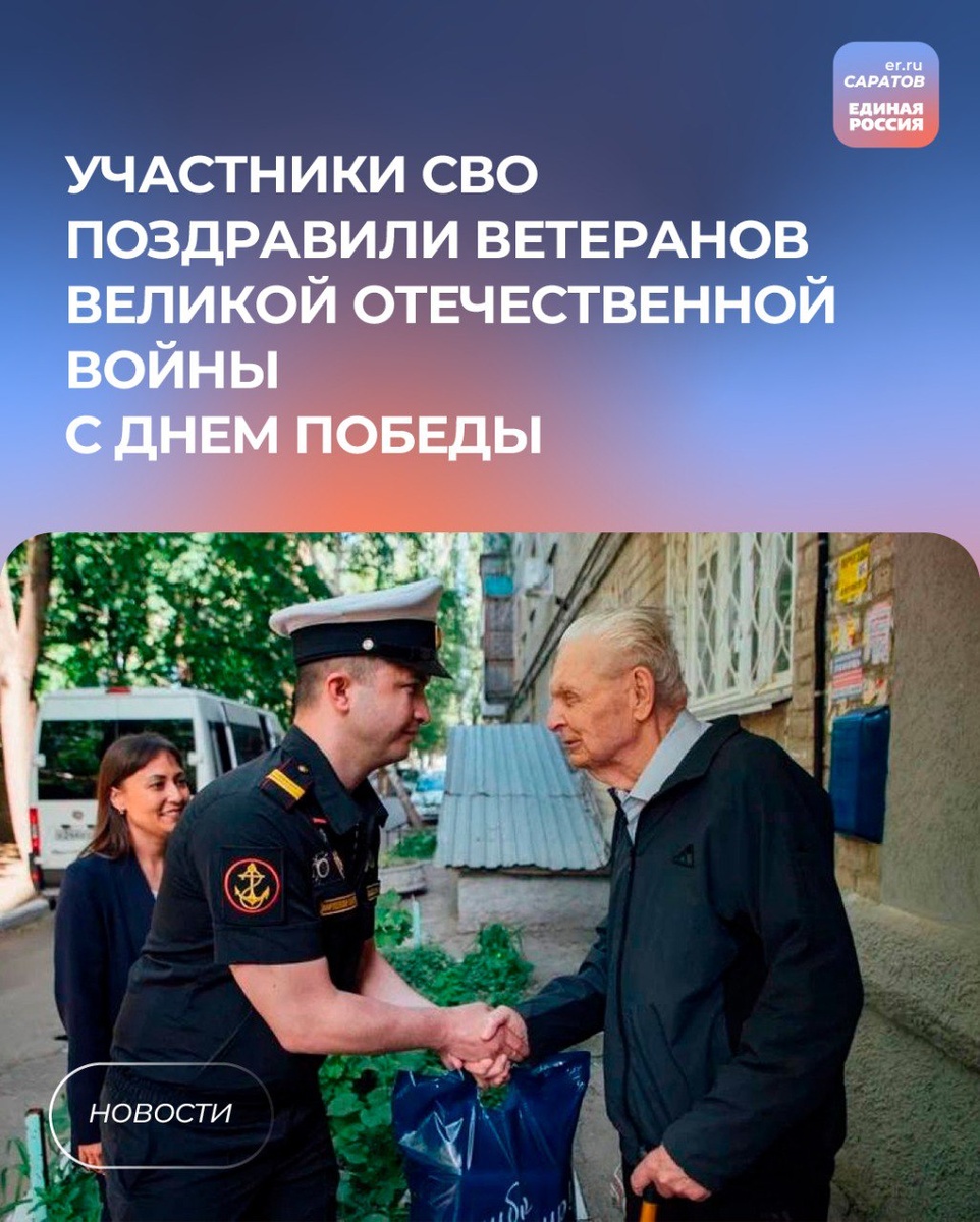 🙏🏼По инициативе партии «Единая Россия» в Саратове проходят концерты во дворах домов ветеранов Великой Отечественной войны. В знак искренней признательности за подвиги, совершённые во время Великой Отечественной войны ветераны специальной военной операции Сергей Фролков и Руслан Бабаджанов вместе с партийцами Октябрьского района Саратова поздравили ветеранов Виктора Вологжанина, Владимира Денисова, Зякиуллу Бикуллова, Александра Каймакова, Гелия Матюка, Александра Симонова с 80-летием Великой Победы и поблагодарили их за истинный пример мужества. Музыкальные поздравления для ветеранов прозвучали в исполнении творческих коллективов района. 💬«Ветераны — яркий пример истинного героизма, патриотизма и человечности. Они пережили тяжелые времена, проявляли мужество и выдержку, защищая свою страну и наше будущее. Мы низко кланяемся каждому и благодарим за мирное небо и подаренную жизнь», - поделился член политсовета Октябрьского местного отделения, ветеран СВО Руслан Бабаджанов.