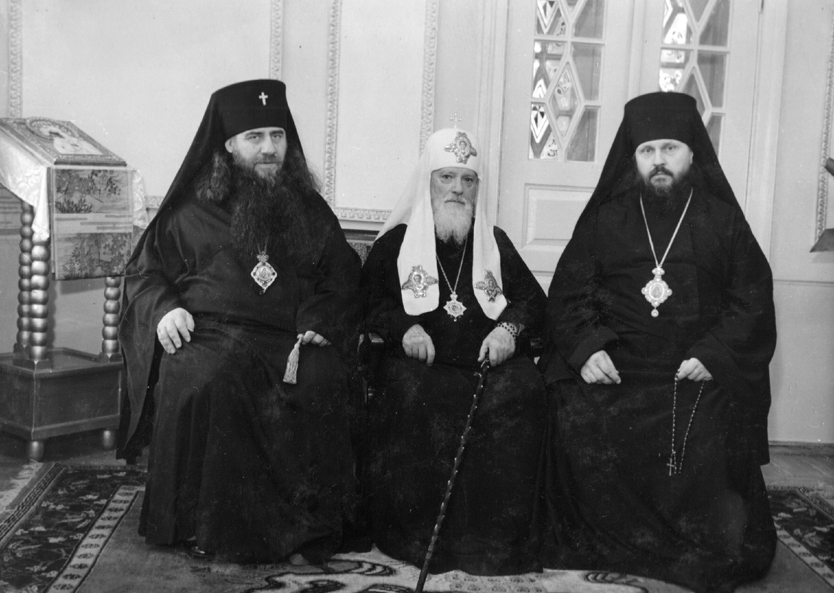 На фотографии архиепископ Херсонский и Одесский Преосвященный Борис (Вик), Святейший Патриарх Московский и всея Руси Алексий I (Симанский) и епископ Пимен (Извеков).