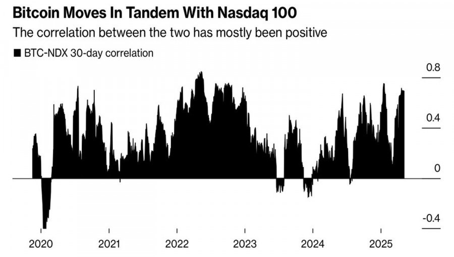 https://basechop.ru/wordpress/?p=42290 Биткойн преодолел отметку 100000, вошел в консолидацию и подтвердил, таким образом правило. Ранее после прорыва психологически важных уровней криптовалюта некоторое время топталась на месте и только после этого определялась с направлением дальнейшего движения. На этот раз у цифрового актива есть все основания для осторожности. Главным драйвером почти 40%-го ралли BTC/USD от уровней апрельского дна стал подогретый снижением градуса торговой неопределенности глобальный аппетит к риску. Биткойн продолжает отслеживать динамику фондовых индексов США, а его корреляция с NASDAQ 100 продолжает расти. Динамика корреляции биткойна с NASDAQ 100 Опережающая динамика BTC/USD над американскими фондовыми индексами обусловлена тем фактом, что управляющие активами воспринимают криптовалюту и золото как инструменты, обязательные для диверсификации портфелей. С начала года приток капитала в ориентированные на драгметалл четыре крупнейших ETF составил $14 млрд, на