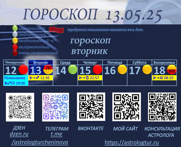 Утро до 10 часов (мск) может принести неожиданные ситуации и повышенную нервозность. Например, внезапный звонок или новость могут заставить нас менять планы, а реакция кого-то из окружения может оказаться неожиданной или неадекватной. К полудню настроение улучшится. Мы станем спокойнее и увереннее, появится желание заняться важными делами, и этот период как раз к этому располагает. Это хорошее время для встреч, переговоров, планирования, структурирования. Днём появится возможность решить старые проблемы или найти общий язык с близкими. В это время мы можем не только понять, что мешает нам двигаться вперёд, но и как исправить ситуацию. Вообще, это отличное время для полета творческой фантазии. Вечером, как это ни странно, мы можем почувствовать прилив сил, непреодолимое желание объять необъятное. Это поспособствует выполнению сложных задач или поможет выполнить большой объём работы. Также в это время может появиться новая цель или благоприятная возможность. Но несмотря на положительные