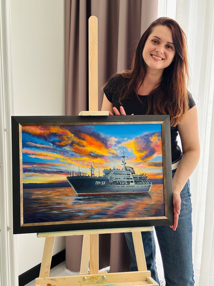 КАРТИНА НА ЗАКАЗ 👩🎨 Недавно моя мама писала картину на заказ ,,Корабль,,. Я ее почти не отвлекал и она все успела закончить вовремя и доставить работу в Джанкой. Картина на заказ - это интересная работа. Она требует постоянного общения с клиентом. Нужно выслушать его пожелания и сделать все красиво. Здесь важную роль играет и подбор рамы, и точный размер, и , конечно же, сюжет близкий и родной для человека. Именно так моя мама работала над полотном ,,Корабль,, для Елены и ее мужа Александра. Он моряк и долго служил. Для него это что- то личное и родное. Мы очень рады, что картина понравилась Александру. Еще раз поздравляем его с юбилеем! Желаем здоровья, семейного благополучия и достатка! Еще больше маминых картин в Телеграм канале: https://t.me/crimeagallery И на сайте: https://crimeagallery.ru