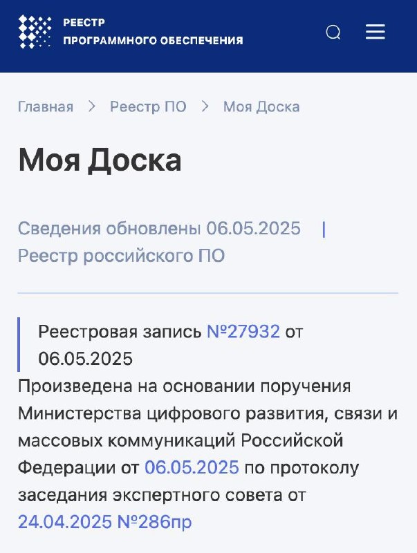 МояДоска включили в Реестр Российского ПО! 🚀 @moyadoska | moyadoska.com