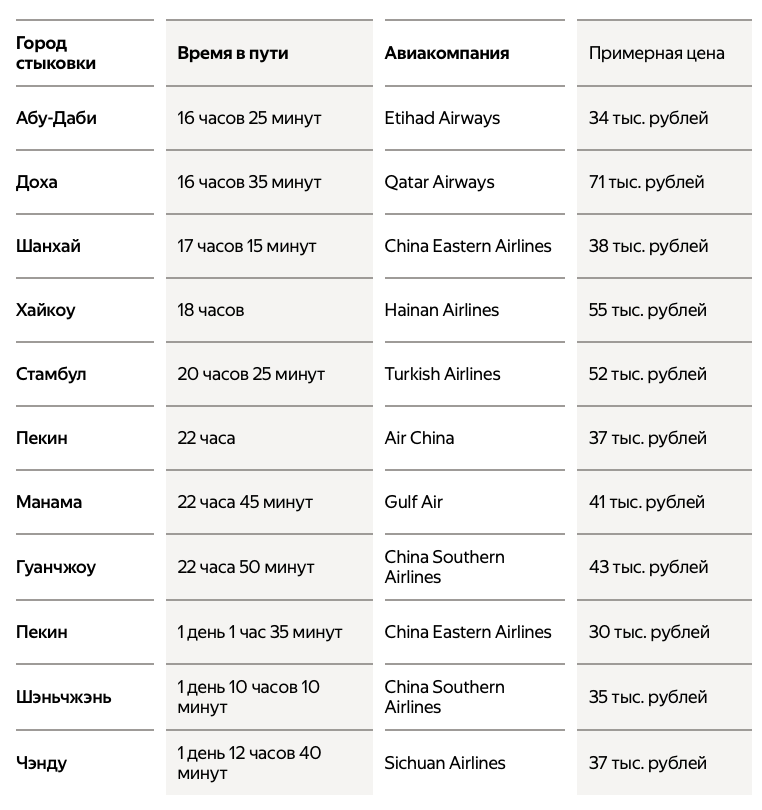 Республика Сингапур — город-государство с богатой культурой, инновационной архитектурой и вкусной кухней. Страна всё чаще привлекает путешественников из России. Расскажу, какими авиакомпаниями и за сколько часов можно добраться из Москвы до Сингапура в 2025 году. Расстояние от Москвы до Сингапура — 8415 км. Прямых рейсов из Москвы сейчас нет, но можно лететь с пересадками одной авиакомпанией или разными. В таблице покажу самые удобные варианты, чтобы не приходилось получать багаж и отправляться в другой аэропорт. Цены актуальны на март 2025 года. Также получится улететь через Дубай, Бангкок или Дели, но разными авиакомпаниями. Это не всем удобно, но так выйдет относительно бюджетно и быстро. Проверяйте рейсы в сервисе Яндекс Путешествий. При покупке билетов обращайте внимание на длительность пересадки. Слишком короткая приведёт к тому, что вы не успеете на следующий рейс, а длинная утомит. Идеальное время для неё — три-четыре часа. Этого достаточно, чтобы спокойно пройти все необходимы
