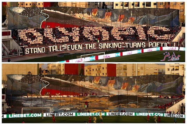 Начнем сегодняшний обзор с экзотической Африки, а если точнее, то с фанатов марокканского клуба «Олимпик» из города Сафи, которых мы уже как-то вспоминали с их шикарным перфомансом про легендарный нокаут Майка Тайсона. В этот раз они представили новую композицию: на домашней игре против «Магреба» (Фес) ультрас «Олимпика» представили фантастическое тройное хорео, посвященное крушению легендарного «Титаника». Первой частью стало модульное шоу, которое гласило «Трибуна «Олимпика» возвышается и даже погружение становится завораживающим». Все это происходило на фоне баннера с самой известной морской катастрофой в истории человечества — после того, как плашки убрали, на их место пришел огромный баннер, изображающий темные воды Атлантического океана.