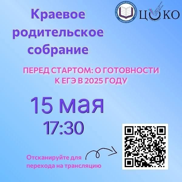 📣 Минобркубани приглашает родителей выпускников на краевое онлайн-собрание по вопросам ЕГЭ! 🗓 Оно состоится 15 мая в 17.30 часов. В ходе встречи участники узнают ✔️ о процедуре проведения ЕГЭ в 2025 году, ✔️ о правилах поведения в экзаменационном пункте, ✔️ о сроках и порядке подачи апелляций, ✔️ о работе апелляционной комиссии, ✔️ как поддержать ребенка и настроить его на достижение положительного результата на ЕГЭ. 📌 Подключиться к прямой трансляции можно по ссылке 👉 https://vk.com/video751098906_456239032. Там же будет размещена запись трансляции. #школа #ЕГЭ #экзамены
