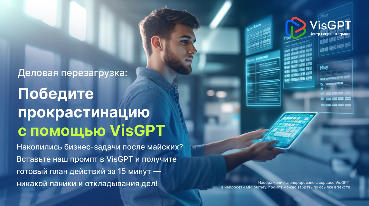 Предлагаем вам готовый промпт для работы в сервисе VisGPT, который поможет разобраться в хаосе задач после майских праздников.