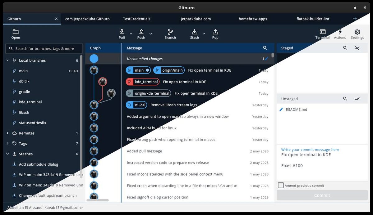 π Gitnuro β ΠΊΡΠΎΡΡΠΏΠ»Π°ΡΡΠΎΡΠΌΠ΅Π½Π½ΡΠΉ Git-ΠΊΠ»ΠΈΠ΅Π½Ρ Π±Π΅Π· ΠΏΠΎΠ΄ΠΏΠΈΡΠΎΠΊ ΠΈ ΡΠ»Π΅ΠΆΠΊΠΈ. ΠΡΠΎΡ ΠΏΠΎΠ»Π½ΠΎΡΡΡΡ ΠΎΡΠΊΡΡΡΡΠΉ ΠΊΠ»ΠΈΠ΅Π½Ρ Π½Π° Kotlin ΠΏΡΠ΅Π΄Π»Π°Π³Π°Π΅Ρ Π°Π»ΡΡΠ΅ΡΠ½Π°ΡΠΈΠ²Ρ ΡΡΠΆΠ΅Π»ΠΎΠ²Π΅ΡΠ½ΡΠΌ ΡΠ΅ΡΠ΅Π½ΠΈΡΠΌ Π²ΡΠΎΠ΄Π΅ GitKraken ΠΈΠ»ΠΈ SourceTree. Π ΠΎΡΠ»ΠΈΡΠΈΠ΅ ΠΎΡ Π²Π΅Π±-ΠΎΡΠΈΠ΅Π½ΡΠΈΡΠΎΠ²Π°Π½Π½ΡΡ