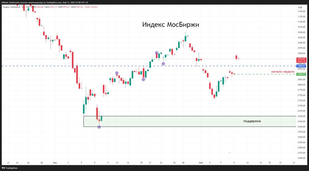 КОРОТКО ПО СИТУАЦИИ НА РЫНКАХ 🤓 1. РФ рынок +2,6% Начинаем неделю с бурного роста на фоне геополитики. Речь идет о переговорном процессе в Стамбуле. Уже на утренней сессии увидели сильный рост. Сейчас необходимо подкопить топливо в коррекции, чтобы лететь дальше. Главное, чтобы не было агрессивных продаж. 2. Поводыри все в плюсе (см. 4 скрин) 3. В лидерах роста сегодня $RBCM +10,6% РБК Уперлись в сопротивление и не можем пока пройти его. Покупки можно рассматривать только после пробоя и закрепления. $SPBE +9,3% СПБ Биржа Растет на фоне возможного урегулирования конфликта и снятия санкций. Но... Максимумы понижаются. В левой части графика есть агрессивные продажи. Необходимо обновлять предыдущий максимум 298 и закрепляться выше. только тогда можно рассматривать спекулятивные безопасные покупки. 5. В лидерах падения $TTLK -4,6% Таттелеком Совершенно не интересный график. Если и рассматривать покупки, то только инвестиционные. $PLZL -1,4% Полюс Падает на фоне спада цен на Золото.