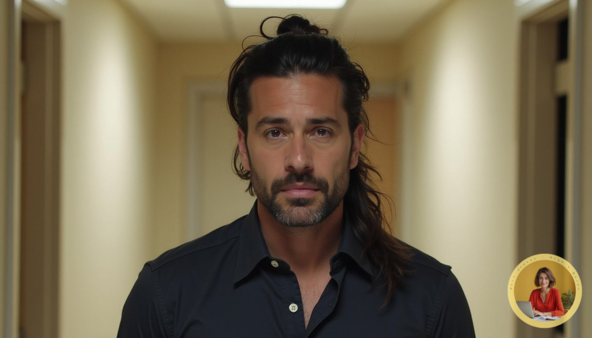 Сергей появился в дверях — высокий, с тёмными волосами, собранными в небрежный хвост, и карими глазами, в которых сейчас читалась вина.