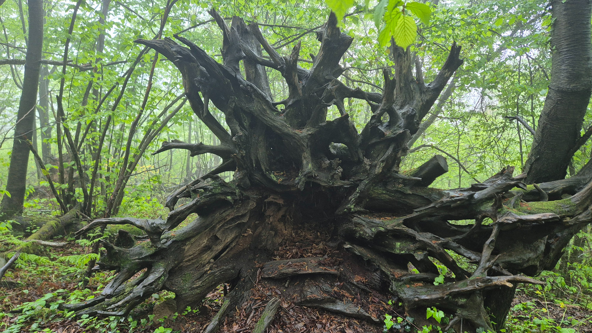 Проходим через мертвый каштановый лес. Поверженные маленьким вредителем огромные многосотлетние каштаны производят сказочно удручающее впечатление!
