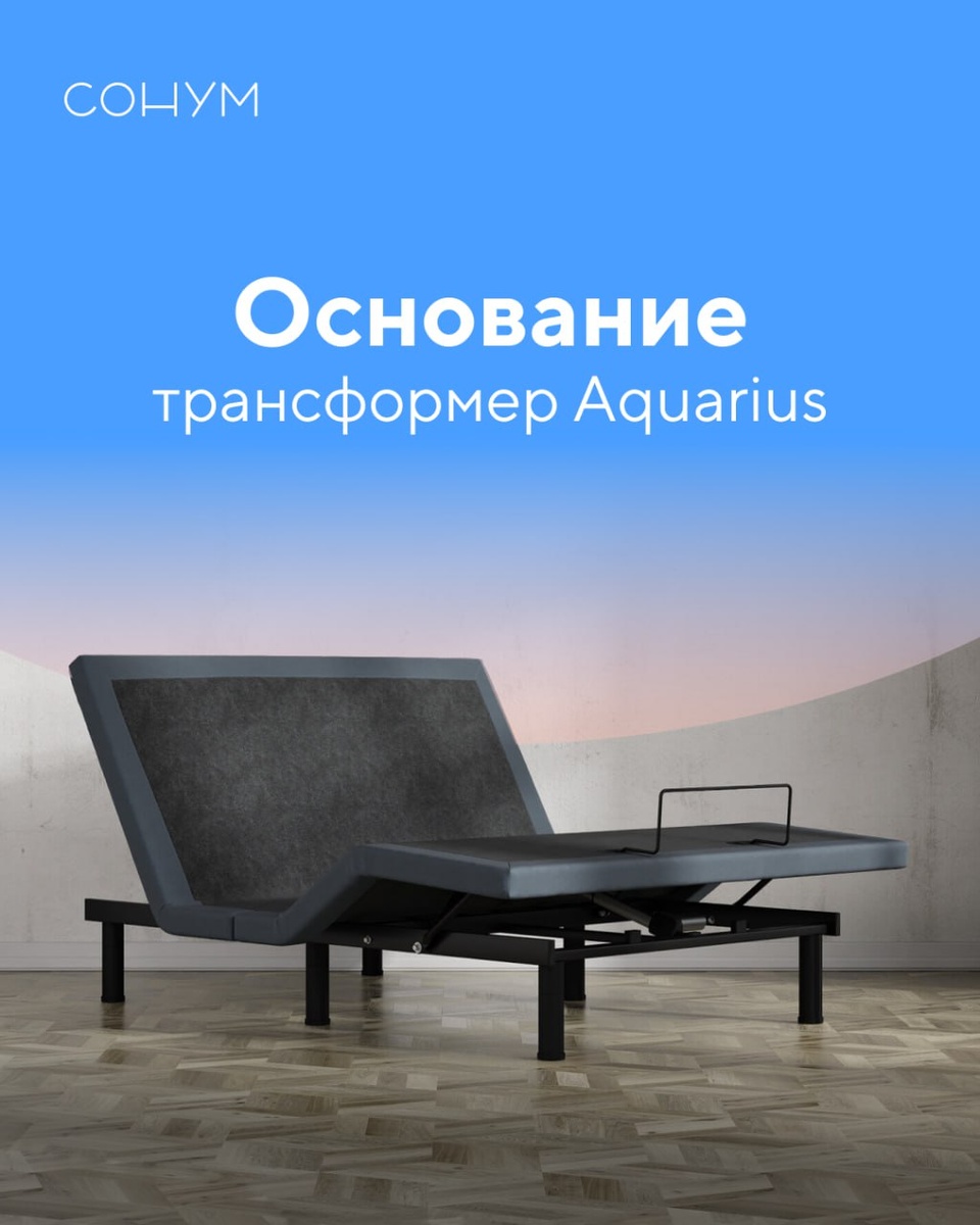 🏙 В современном мире, где качество сна и отдых становятся приоритетами, основание Aquarius — идеальный выбор. Продуманная система сочетает в себе все, что так необходимо для здоровья: 🔹 Основание Aquarius разработано с учетом анатомических особенностей человека. Углы наклона спины регулируются. Если вы любите поработать, почитать в кровати или посмотреть видео перед сном, то теперь это можно сделать без вреда для спины и шеи. 🔹 Основание оснащено вибромассажем и функцией «невесомость». Они направлены на улучшение кровообращения в теле, помогают предотвратить затекание мышц и способствуют их расслаблению. Дополнительная функция «невесомость» дополнительно помогает снизить нагрузку на позвоночник во время сна. 🔹 Основание подойдёт для установки в абсолютно любую кровать. Благодаря регулируемым опорам из 2-х частей можно задать нужную высоту: 15 или 22см.. 🔹 Каркас выполнен из металла, что обеспечивает его прочность, долговечность и устойчивость. Также он рассчитан на большие