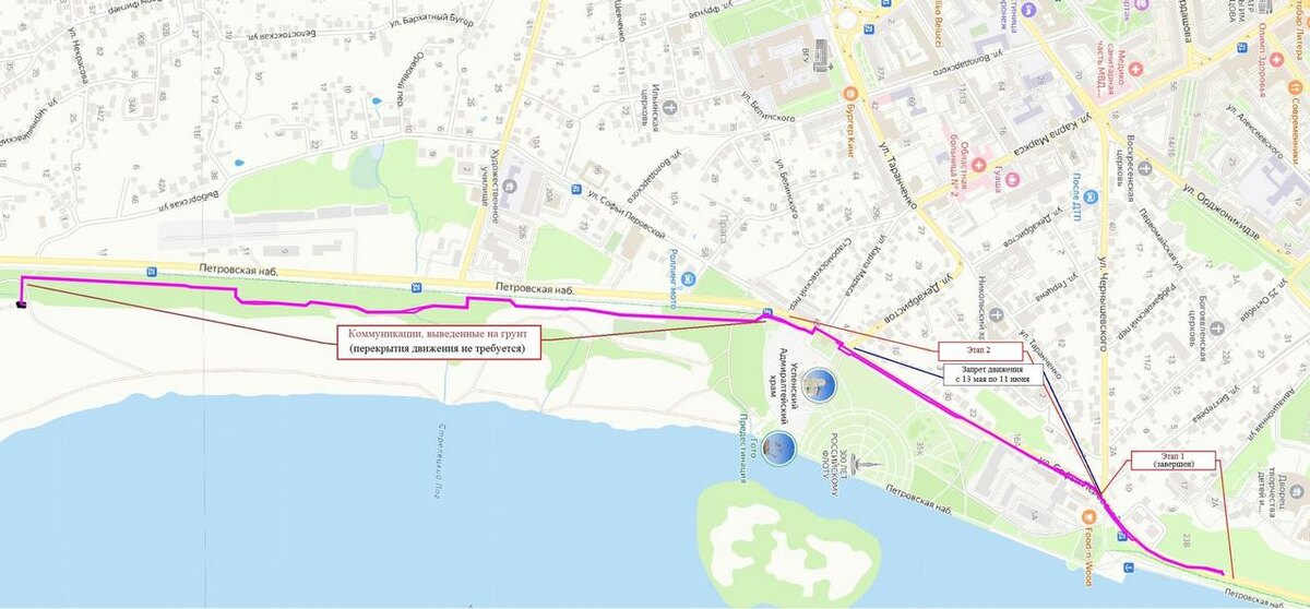 В своём телеграм-канале глава Воронежа Сергей Петрин вернулся к теме устройства инженерных сетей для Петровской набережной. Он напомнил, что ранее в рамках второго этапа перекрытия было анонсировано закрытие автомобильного движения на набережной на ближайшие четыре дня. За это время специалисты РВК-Воронеж должны были выполнить все подготовительные мероприятия перед началом основных работ. Сегодня, 12 мая, Сергей Петрин встретился с ними, обсудил детали. В итоге были приняты решения – уже не технические, а организационные для минимизации неудобств. Как отметил мэр, второй этап конструктивно сложнее, почти вдвое протяжённее, включает большее количество различных коммуникаций. Потому его также разделят на участки. Как ранее уже сообщал «Горком36», предстоящей ночью закроют проезд по улице Софьи Перовской – от улицы Чернышевского до улицы Декабристов, а не до Старомосковского переулка, как планировалось ранее. Связь центральной части города с Чернавским мостом сохранится через улицы Пятни