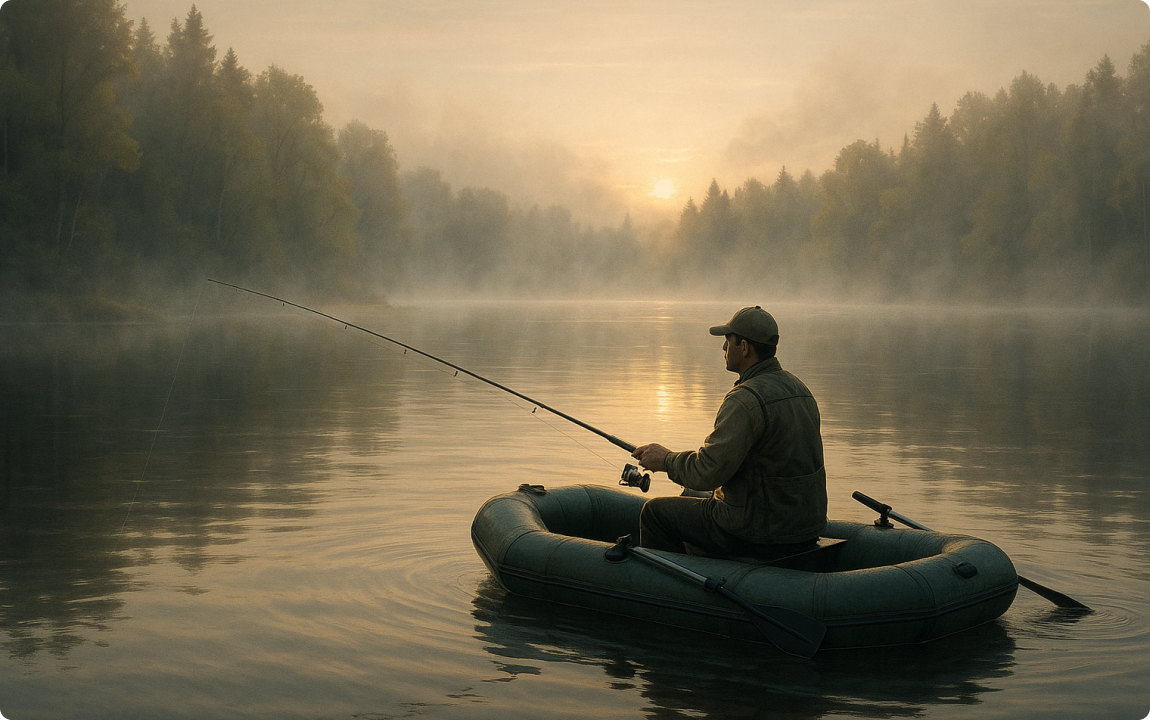 С берега я ловлю давно. Всё привычно: знаешь тропинку к омуту, знаешь, где трава, где глубина. Но в этом мае решил впервые за долгое время выйти на воду с лодкой. Не моторка — обычная, весельная, ПВХ на одного. Хотелось понять: а стоит ли оно того? Делюсь честно — как есть, без прикрас. С берега всё чаще ловим по остаткам. Берега заняты, трава мешает, а лодка — свобода. Подплыл к коряжнику, стал у камыша, проверил перекат — никто не мешает, сам себе хозяин. На рассвете посреди озера — как в другом мире. Туман, всплески рыбы, ни души. Даже звуки леса слышны иначе. Вот за это уже можно любить лодку. Интересно: у берега — тишина, а в 20 метрах от берега — пару поклёвок и одна щука на 1,8 кг. Такое с берега не достанешь. Видимо, в мае рыба уходит чуть дальше, ищет глубину и прохладу. Если есть компактный эхолот — лодка открывает новые горизонты. Видишь глубину, рельеф, рыбу под лодкой. Тоже плюс. Если не привык — всё кажется неудобным: спиннинг мешается, рюкзак под ногами, подсекать неудоб
